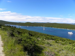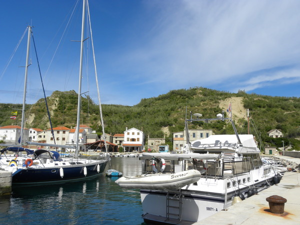 Man liegt dort bequem an Bojen (gegen Gebühr, fast 200 Kuna) und kann zu Fuss auf die andere Seite der Insel ins Städtchen gelangen. Malerische Umgebung.