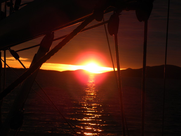 Ankern vor dem Hafen und etwas Erholung. Abends Landgang eines Teils der Besatzung und Nachtessen.Auslaufen um 23 Uhr bei sternenklarer Nacht.